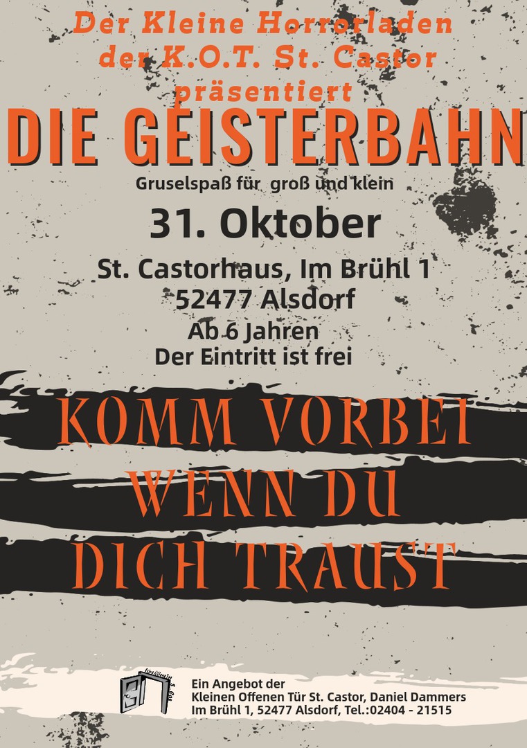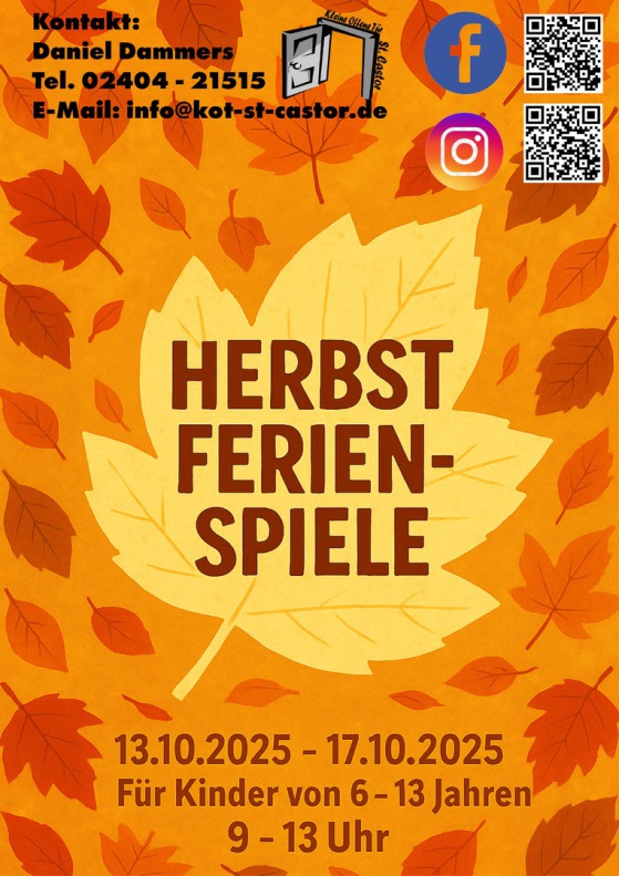 Ab dem 02.09.2024 könnt ihr euch zu unseren diesjährigen Herbstferienspielen anmelden. Unter dem Motto " Spuck im St. Castorhaus" werden