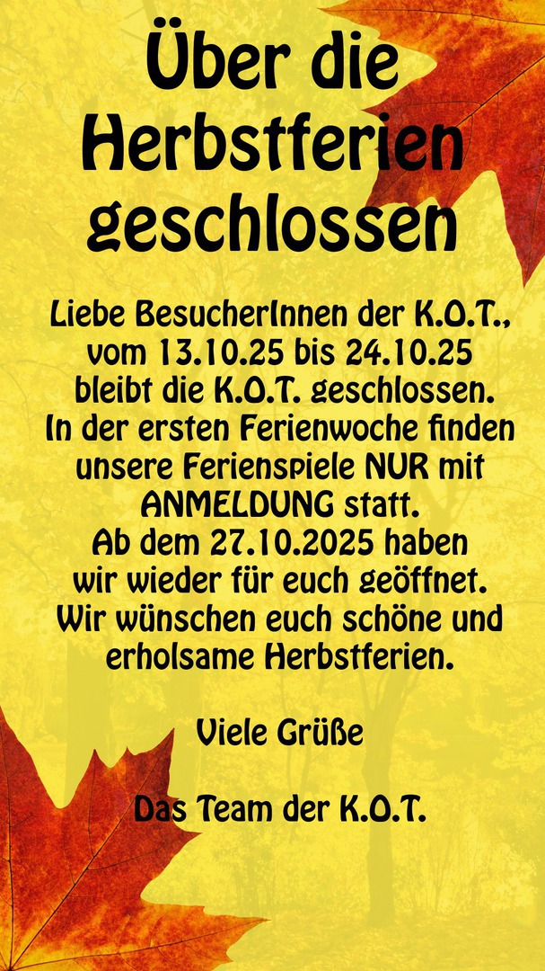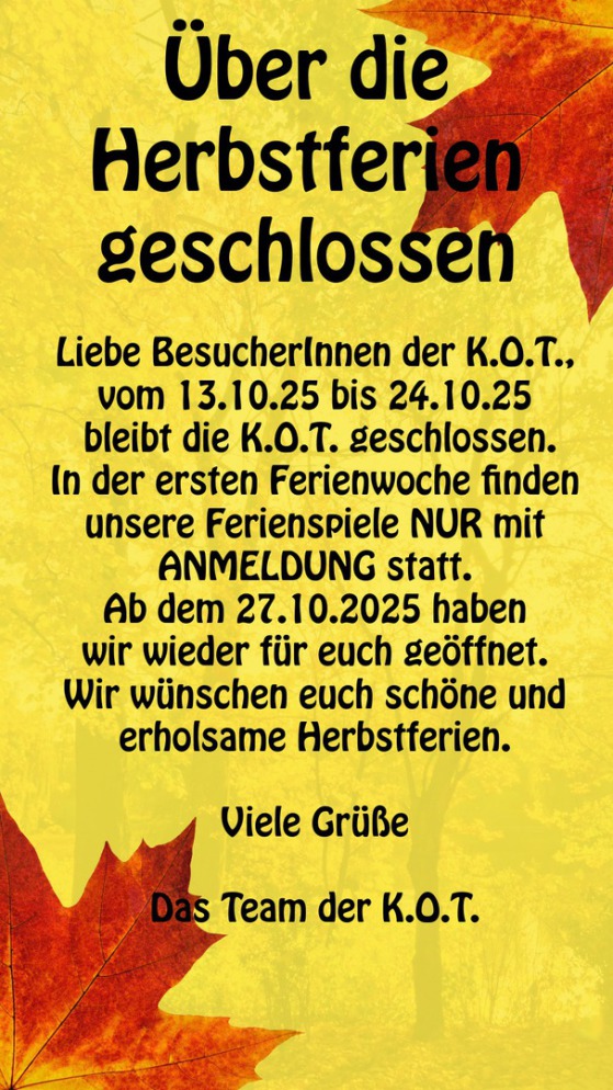 Am Donnerstag, den 19.09.24 und Freitag, den 20.09.2024 bleibt die Einrichtung geschlossen.